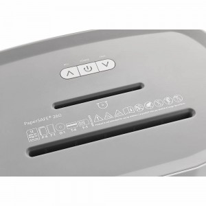 - Zwei separate Schneidwerke für Papier, CDs, DVDs, Scheck- und Kreditkarten